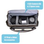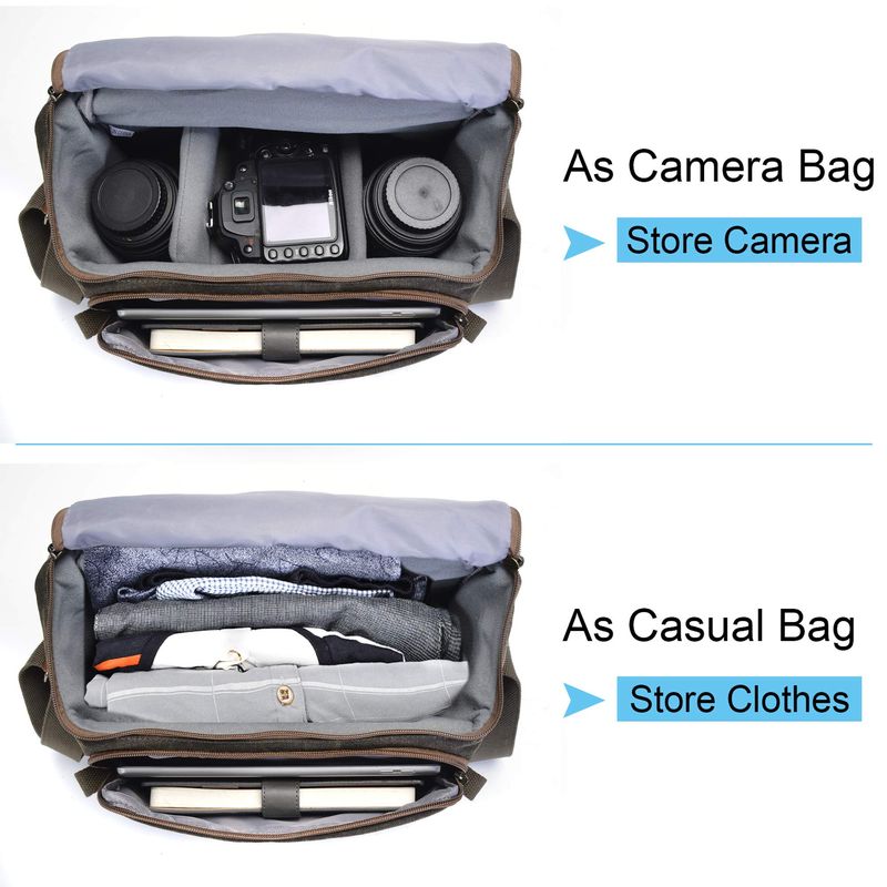 Gran capacidad: 11.0 x 7.1 x 16.9 in largo x ancho x alto. Se adapta a 1 DSLR + 6 lentes + trípode + laptop de 14 pulgadas + iPad + hervidor + teléfono + accesorios. Es flexible convertir la bolsa DSLR en bolsa de viaje de ocio simplemente sacando los separadores de almohadillas extraíbles de la caja de forro.