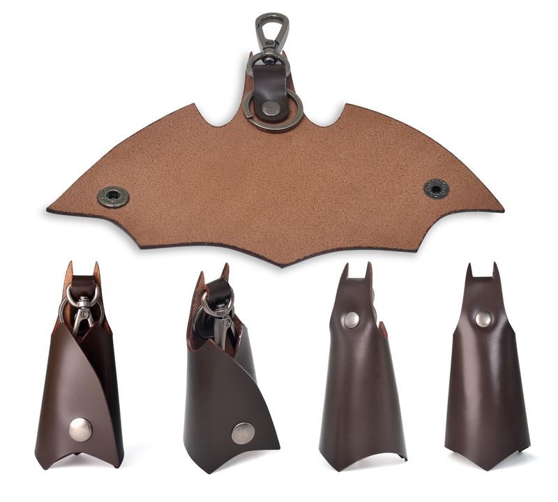 CAILLU Llavero de cuero con forma de murciélago para hombres y mujeres, funda de llavero de