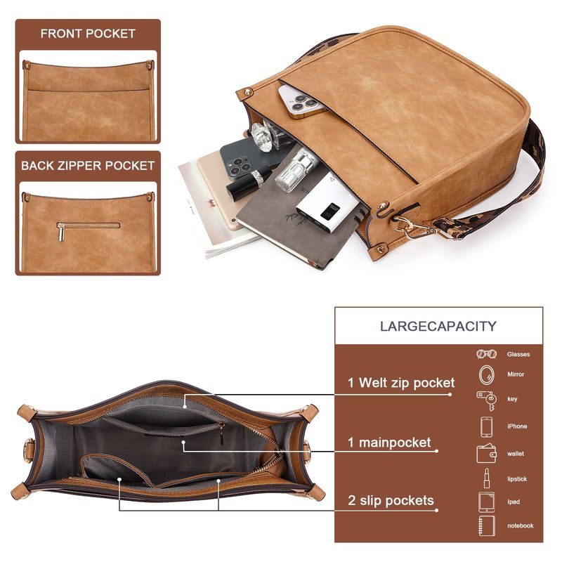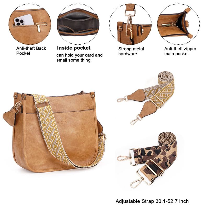HOGARINDUMENTARIA Y ACCESORIOSCaitina Bolso cruzado de cuero vegano para mujer, bolso de hombro cruzado de moda para mujer con 2
