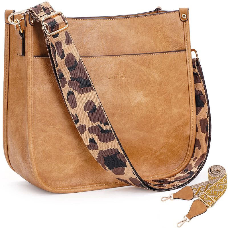 Caitina Bolso cruzado de cuero vegano para mujer, bolso de hombro cruzado de moda para mujer con 2