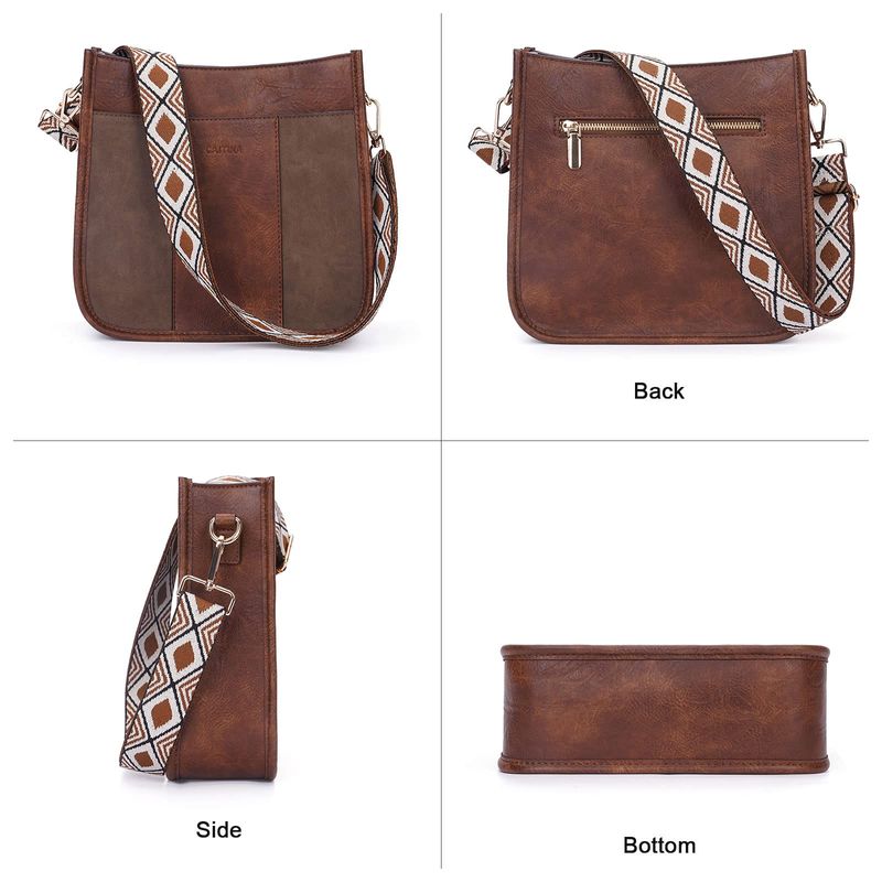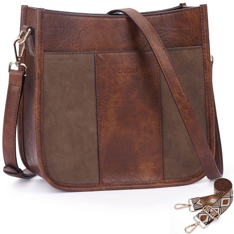Caitina Bolso cruzado de cuero vegano para mujer, bolso de hombro cruzado de moda para mujer con 2