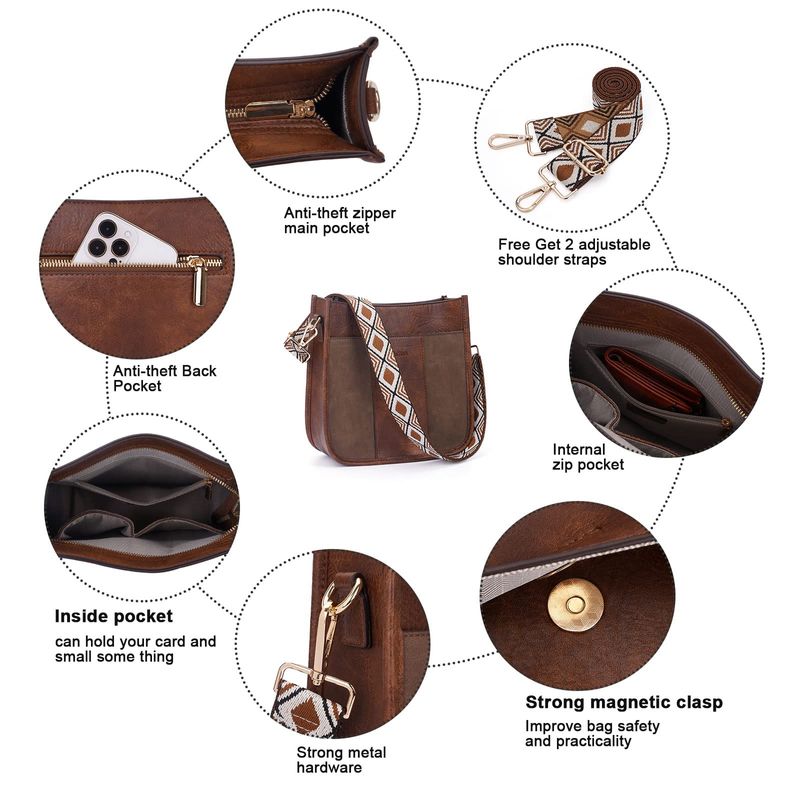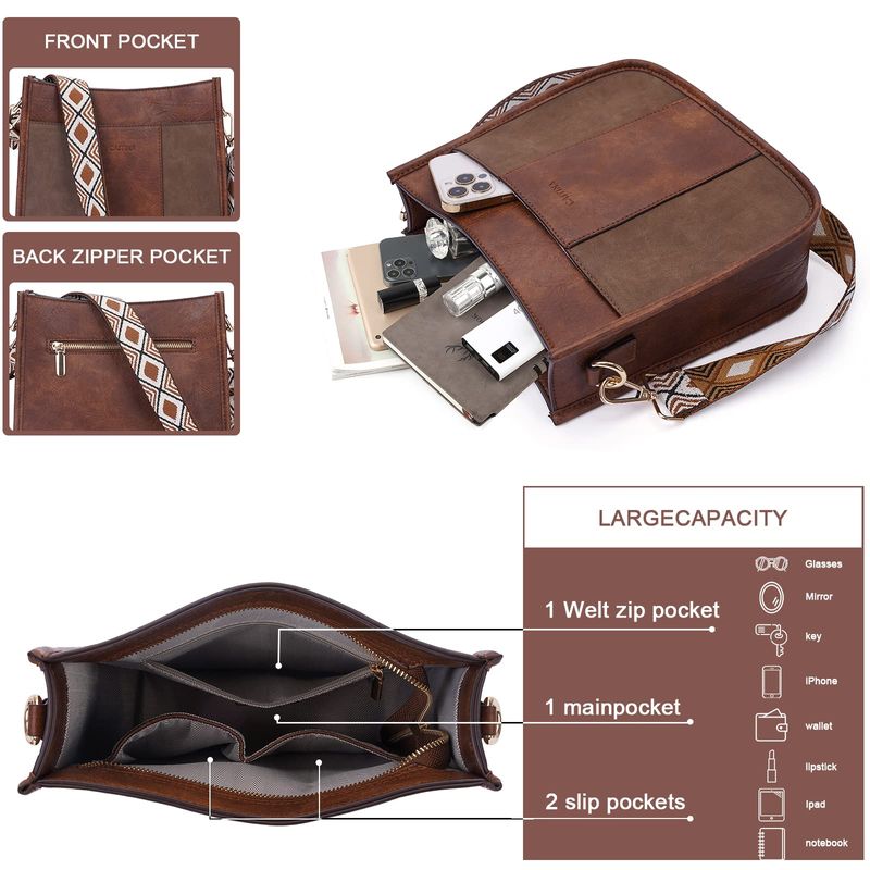 HOGARINDUMENTARIA Y ACCESORIOSCaitina Bolso cruzado de cuero vegano para mujer, bolso de hombro cruzado de moda para mujer con 2