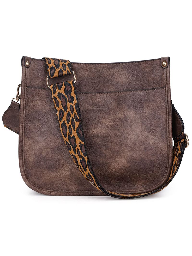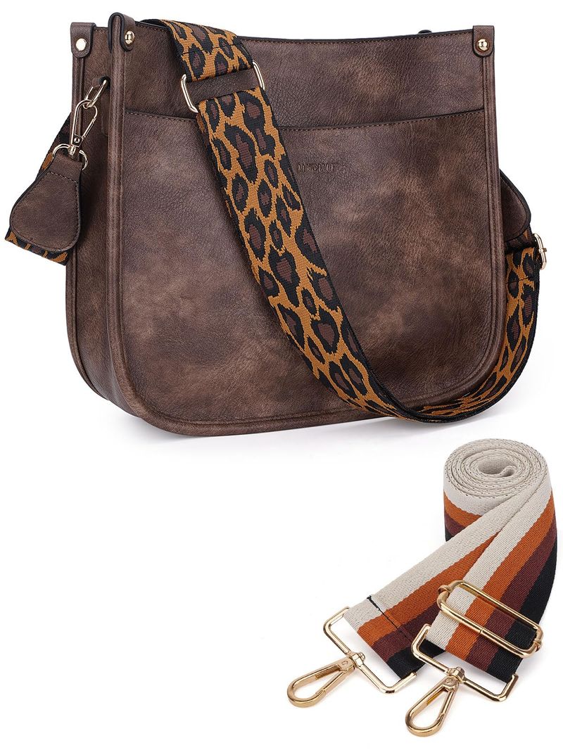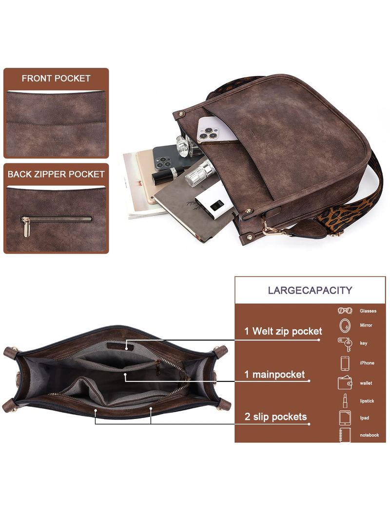 Caitina Bolso cruzado de cuero vegano para mujer, bolso de hombro cruzado de moda para mujer con 2