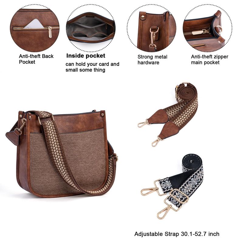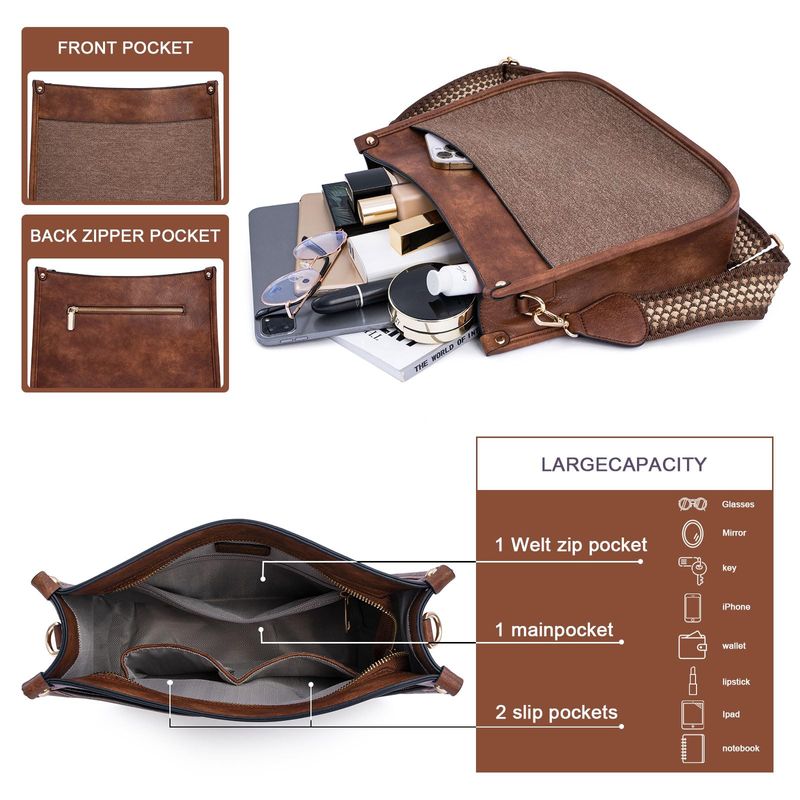 HOGARINDUMENTARIA Y ACCESORIOSCaitina Bolso cruzado de cuero vegano para mujer, bolso de hombro cruzado de moda para mujer con 2