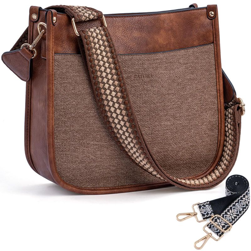 Caitina Bolso cruzado de cuero vegano para mujer, bolso de hombro cruzado de moda para mujer con 2