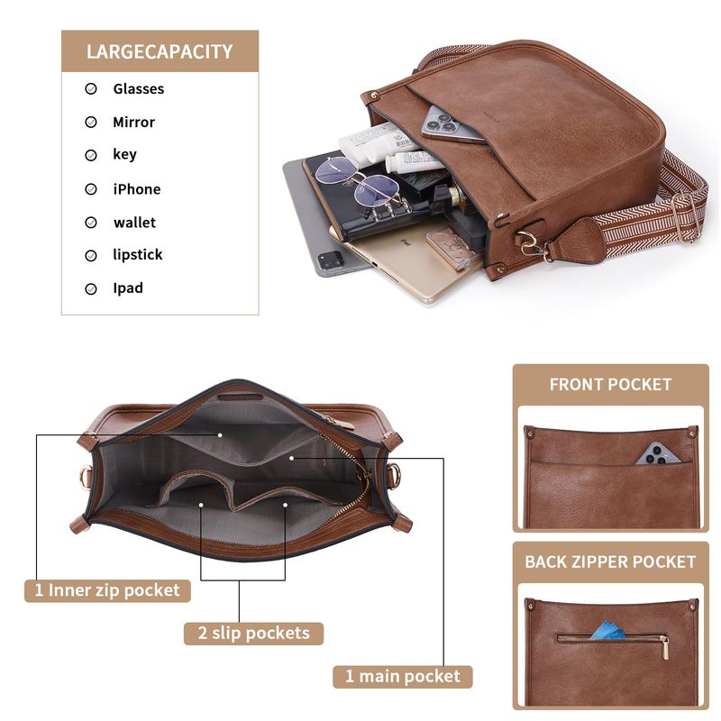 Caitina Bolso cruzado de cuero vegano para mujer, bolso de hombro cruzado de moda para mujer con 2