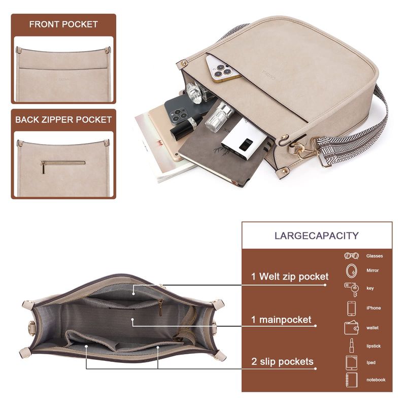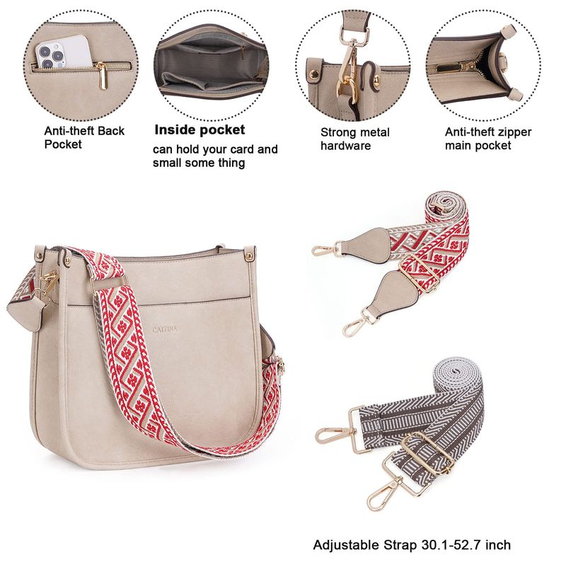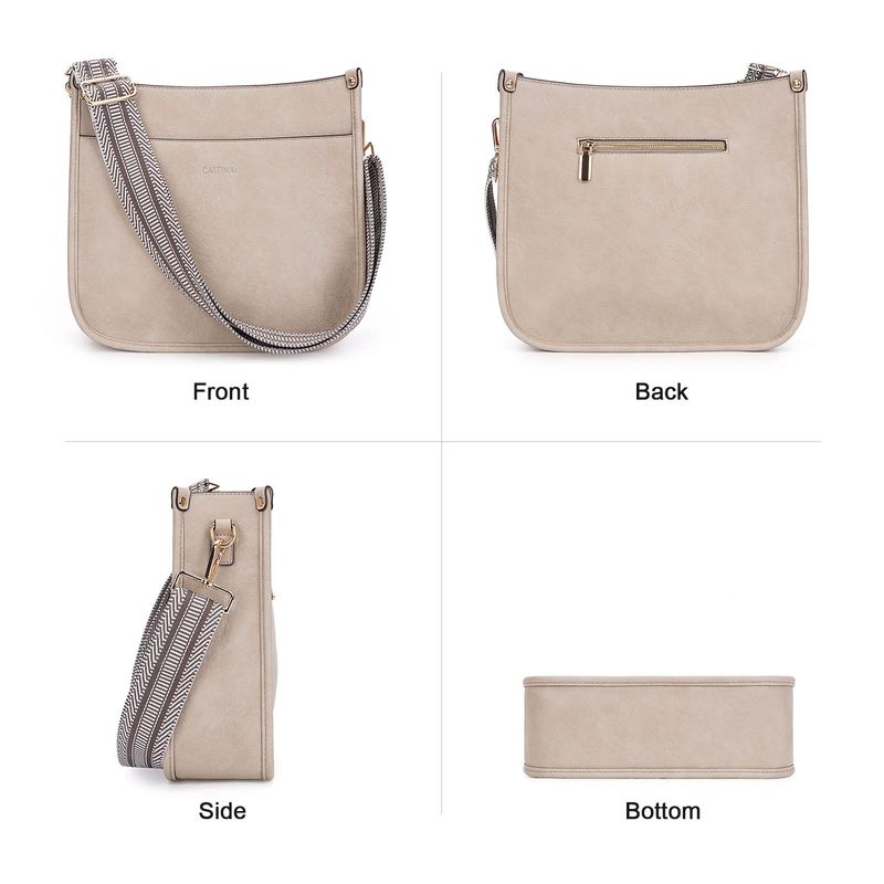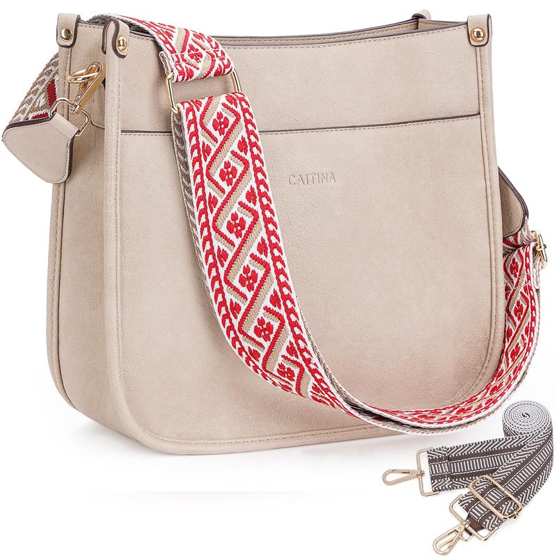 Caitina Bolso cruzado de cuero vegano para mujer, bolso de hombro cruzado de moda para mujer con 2