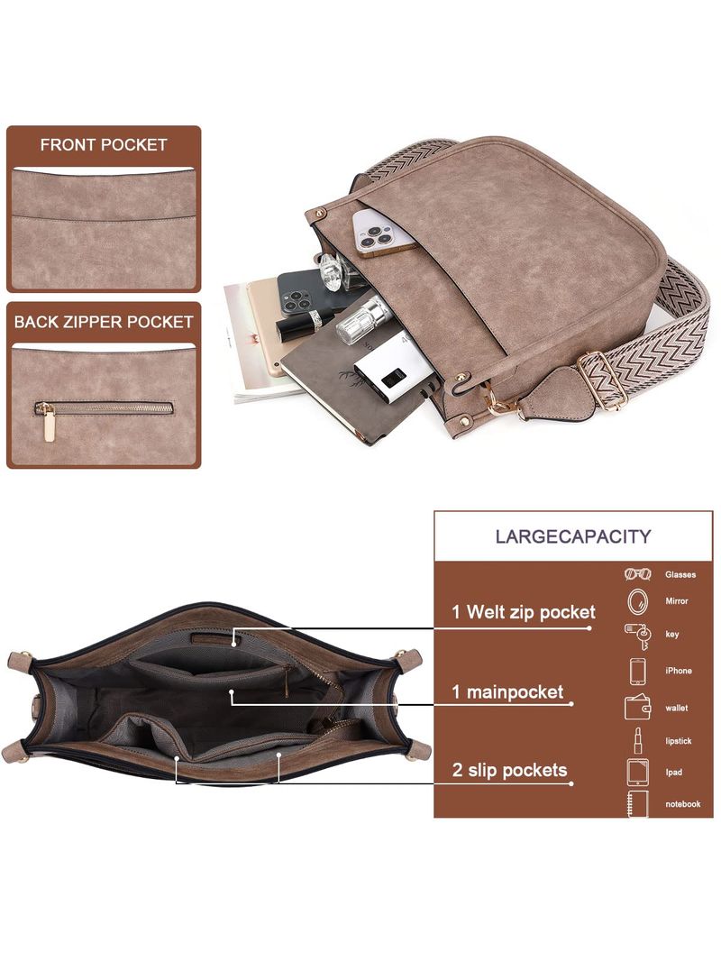 HOGARINDUMENTARIA Y ACCESORIOSCaitina Bolso cruzado de cuero vegano para mujer, bolso de hombro cruzado de moda para mujer con 2
