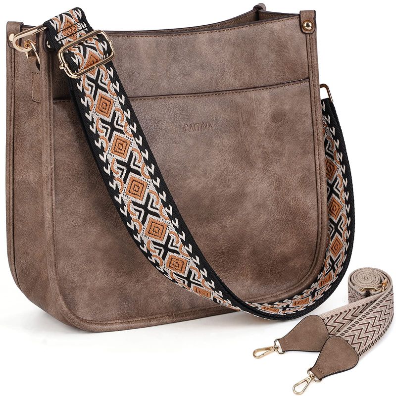 Caitina Bolso cruzado de cuero vegano para mujer, bolso de hombro cruzado de moda para mujer con 2