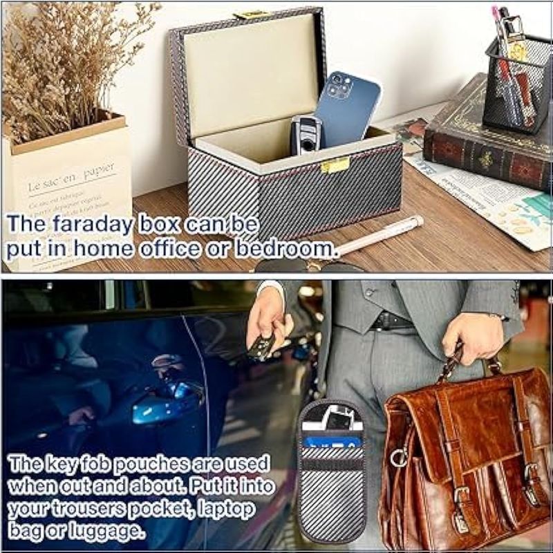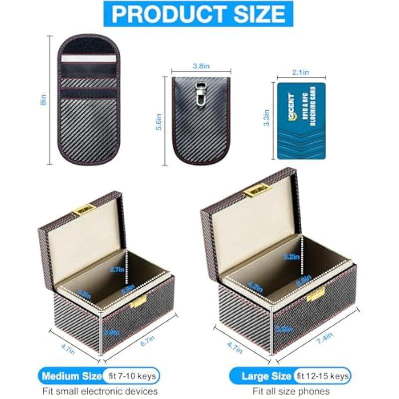 Caja antirrobo Faraday para automóvil con 2 bolsas para llavero de automóvil y 2 tarjetas de bloqueo