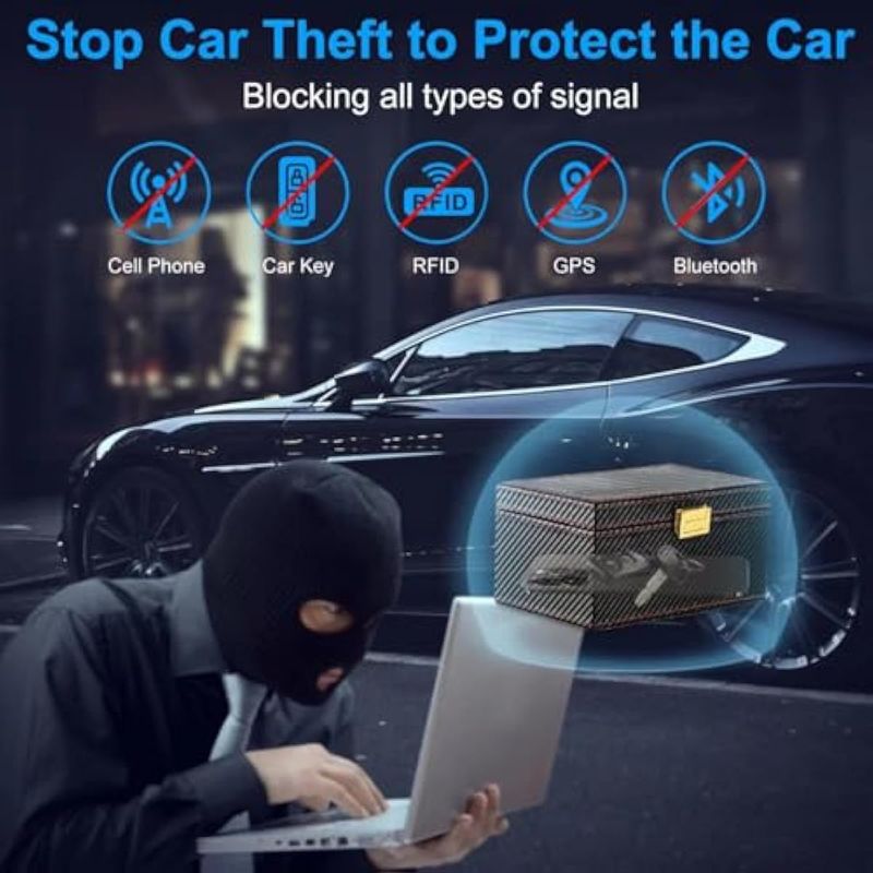 RODADOSHERRAMIENTAS PARA AUTOCaja antirrobo Faraday para automóvil con 2 bolsas para llavero de automóvil y 2 tarjetas de bloqueo