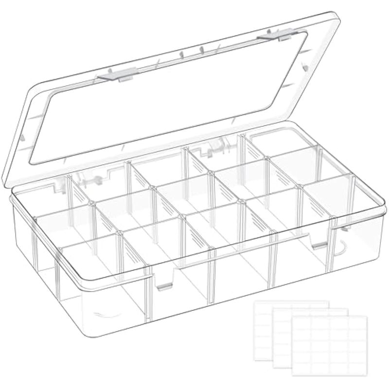 Caja organizadora de plástico grande de 15 rejillas con divisores ajustables, contenedor de