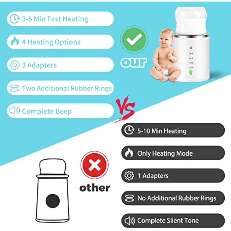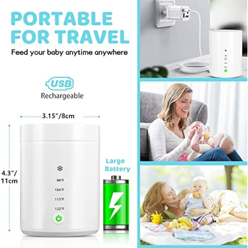 Calentador de biberones, calentador de biberones portátil, calentador inalámbrico para viajes con 3