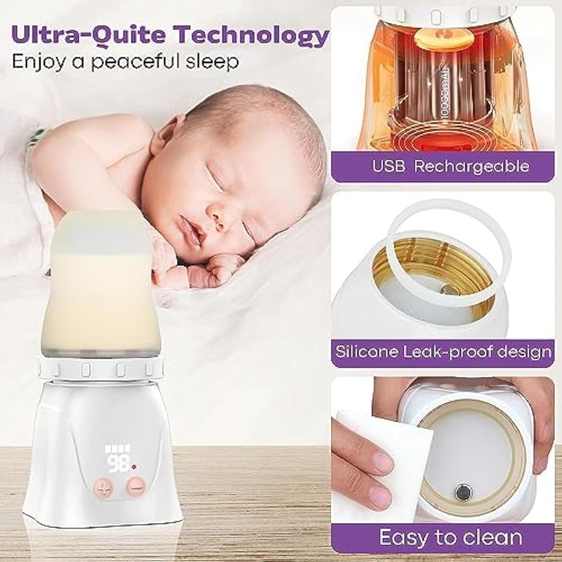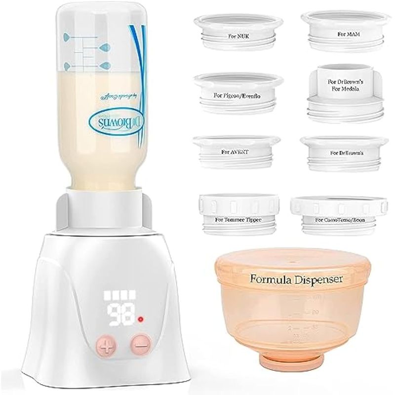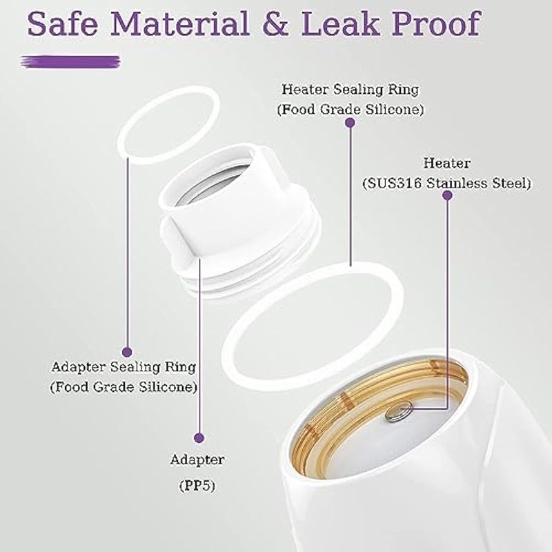 Calentador de biberones portátil, calentador de biberones de viaje con 8 adaptadores, calentador de