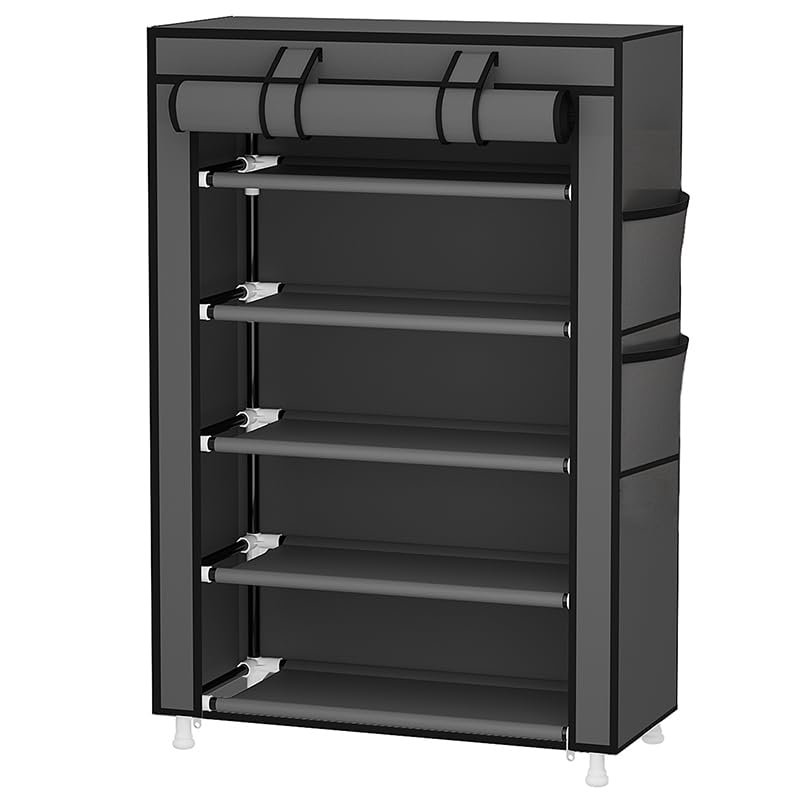 Funda a prueba de polvo: la cubierta de tela del zapatero independiente tiene una doble fila de cremalleras que se cierran y se despliegan para mantener fuera el polvo y mantener tus zapatos limpios.