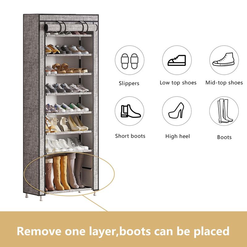 HOGARAMOBLAMIENTOMUEBLES DE DORMITORIOCalmootey Organizador de zapatos de 9 niveles, estante portátil para zapatos con cubierta de tela no