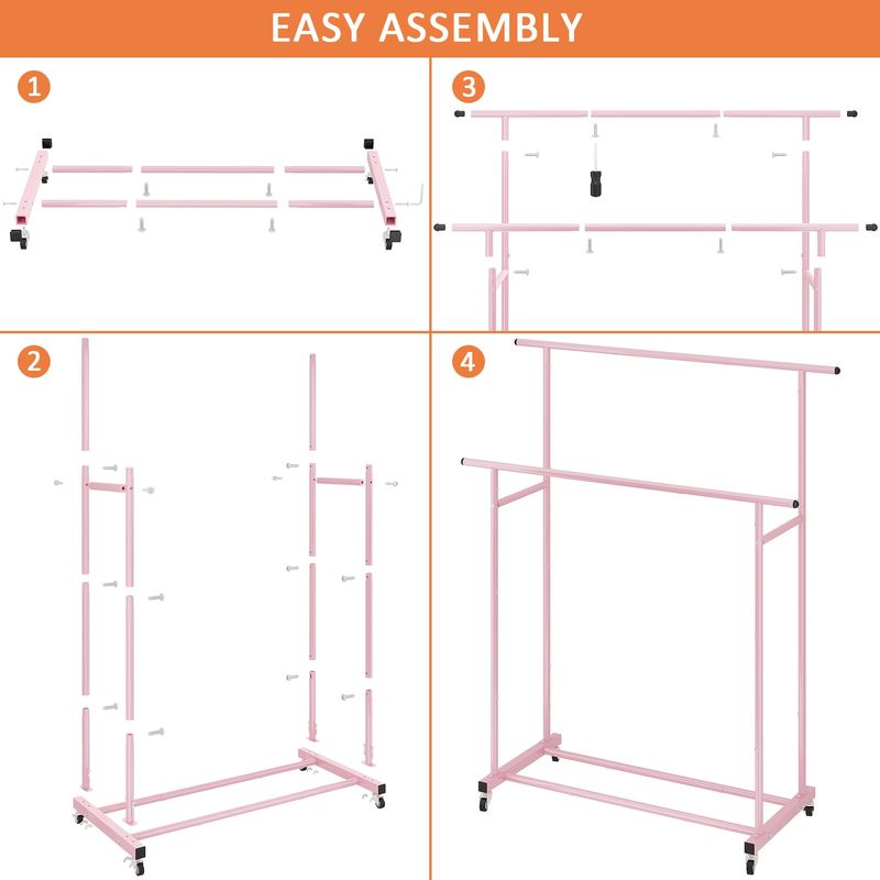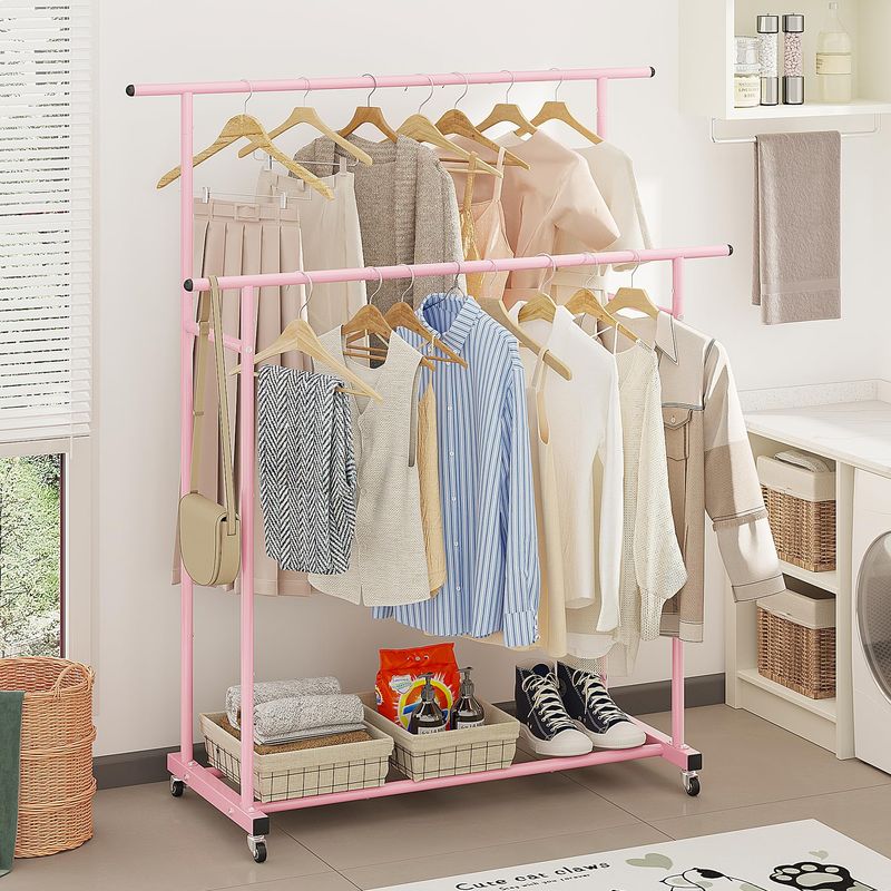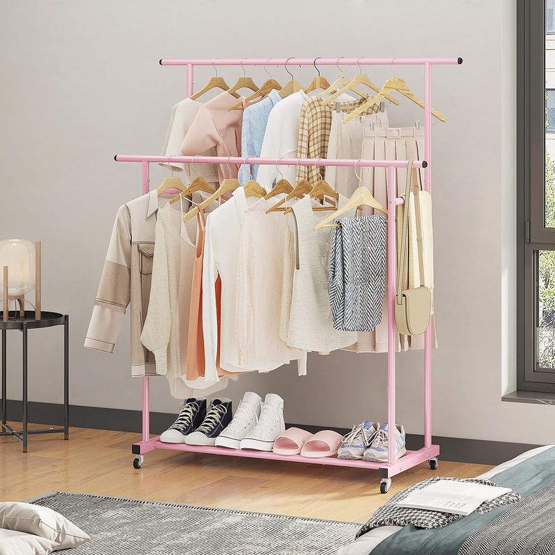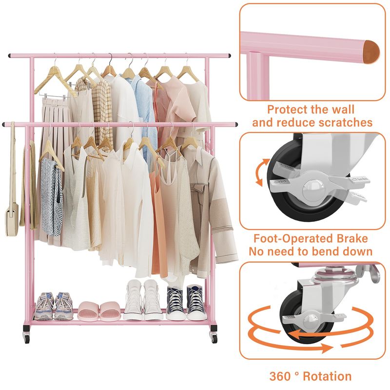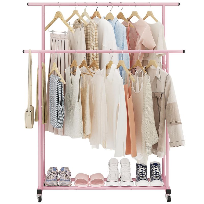 Calmootey Perchero de ropa de doble barra, organizador de ropa portátil para dormitorio, sala de