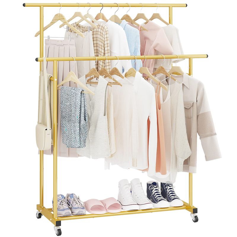CALMOOTEY PERCHERO DE ROPA DE DOBLE BARRA, ORGANIZADOR DE ROPA PORTáTIL PARA DORMITORIO, SALA DE ESTAR, TIENDA DE ROPA, NEGRO