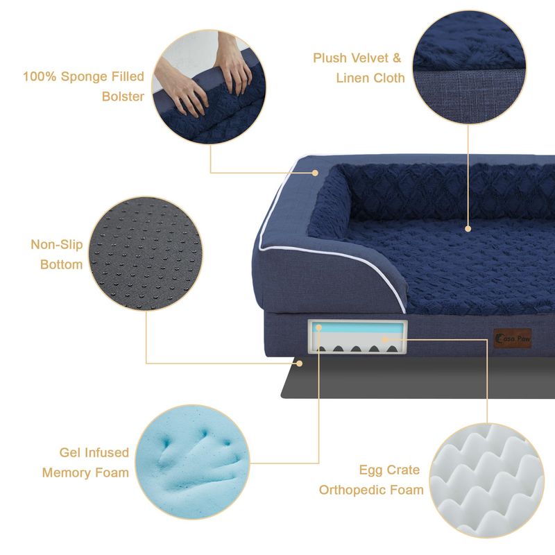 MASCOTASPERROSAccesorios para PerrosCama grande de espuma viscoelástica para perros con refuerzos, camas refrescantes para perros