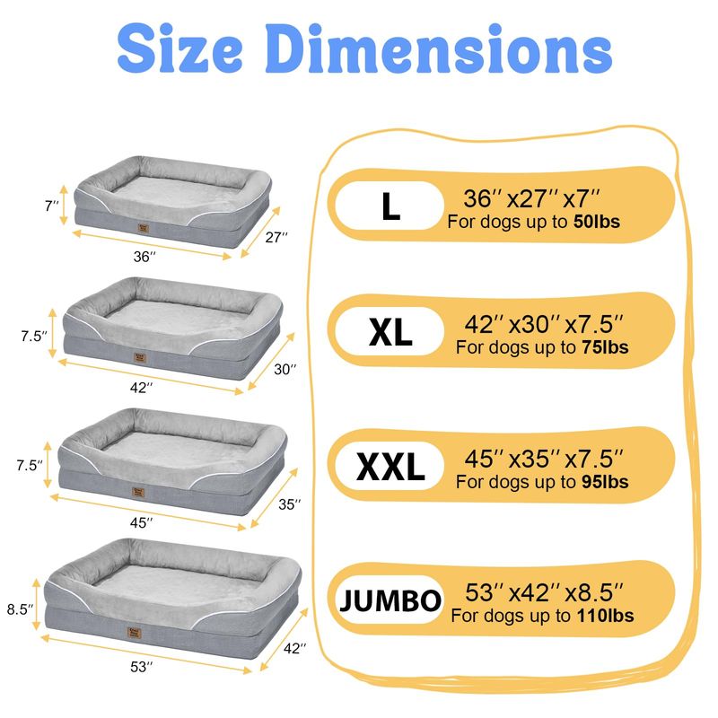 MASCOTASPERROSAccesorios para PerrosCama ortopédica lavable para perros grandes, camas ortopédicas extraíbles de espuma para perros con