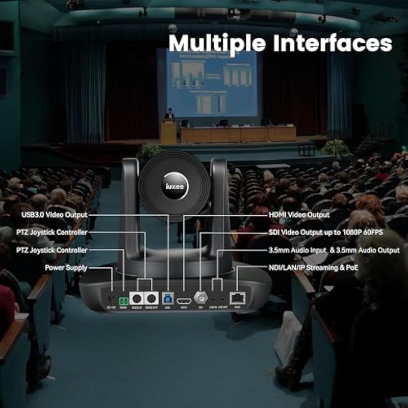 La cámara de transmisión en vivo es compatible con transmisión de audio y video HDMI, SDI, USB e IP, y proporciona alimentación PoE a través de Ethernet. También es compatible con códecs H.264, H.265 y MJPEG, que es ideal para todo tipo de transmisión en vivo audiovisual profesional, videoconferencia y producción de video. Perfectamente compatible con OBS, vMix, Facebook, Youtube y otros software de transmisión de video en vivo.