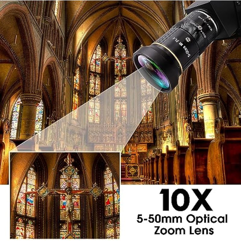 Lente de zoom óptico manual 4K 0.197-1.969 in 10X: esta cámara HDMI 4K ultra-HD USB 3.0 cuenta con un sensor de imagen en color CMOS IMX415 de 12.8 pulgadas con un objetivo de zoom óptico manual de 10x 0.197-1.969 in. Con tecnología 4K de alto píxel, ofrece imágenes nítidas y reproducción precisa del color. La cámara permite ajustes precisos de zoom, brillo y claridad, asegurando tomas claras y detalladas en resolución 4K.