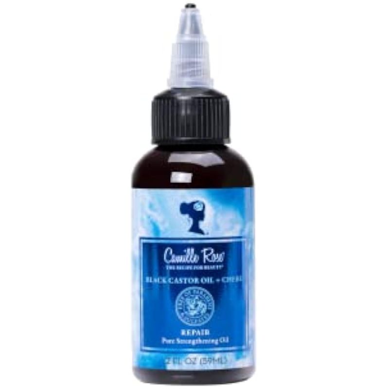 CAMILLE ROSE ACEITE DE RICINO NEGRO Y REPARACIóN DE CHEBE, ACEITE FORTALECEDOR PURO PARA EL BRILLO, EL CRECIMIENTO Y LA FUERZA, PARA TODO TIPO DE CABELLO, 2 ONZAS LíQUIDAS