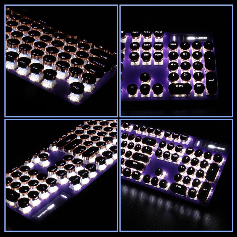 Camiysn Teclado mecánico para juegos estilo máquina de escribir, teclado retro punk negro con