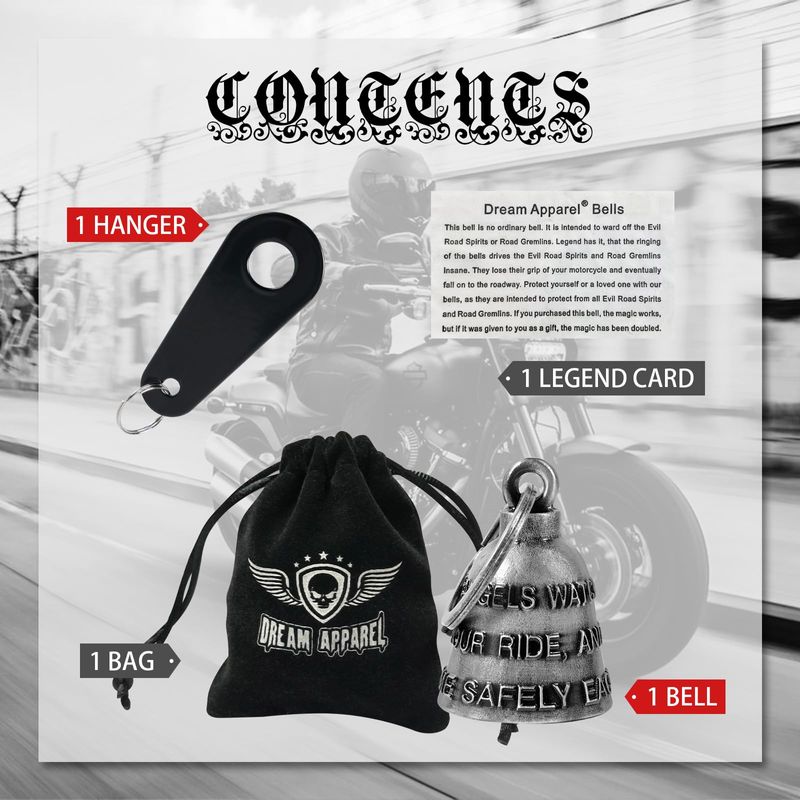 RODADOSHERRAMIENTAS PARA AUTOCampana de motocicleta para motociclista de buena suerte con colgador, accesorio de motocicleta o