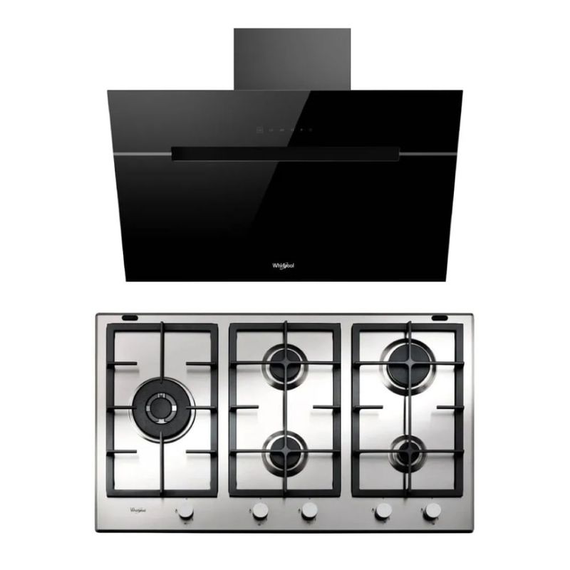 Campana Whirlpool 90 cm Negro Vertical y Anafe Empotrable Multigas Inox 90cm