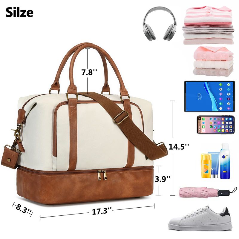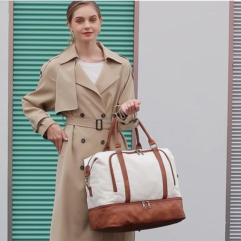 CAMTOP - BOLSA DE VIAJE DE FIN DE SEMANA PARA MUJER, BOLSA DE LONA CON ESPACIO PARA LAPTOP DE15.6 PULGADAS