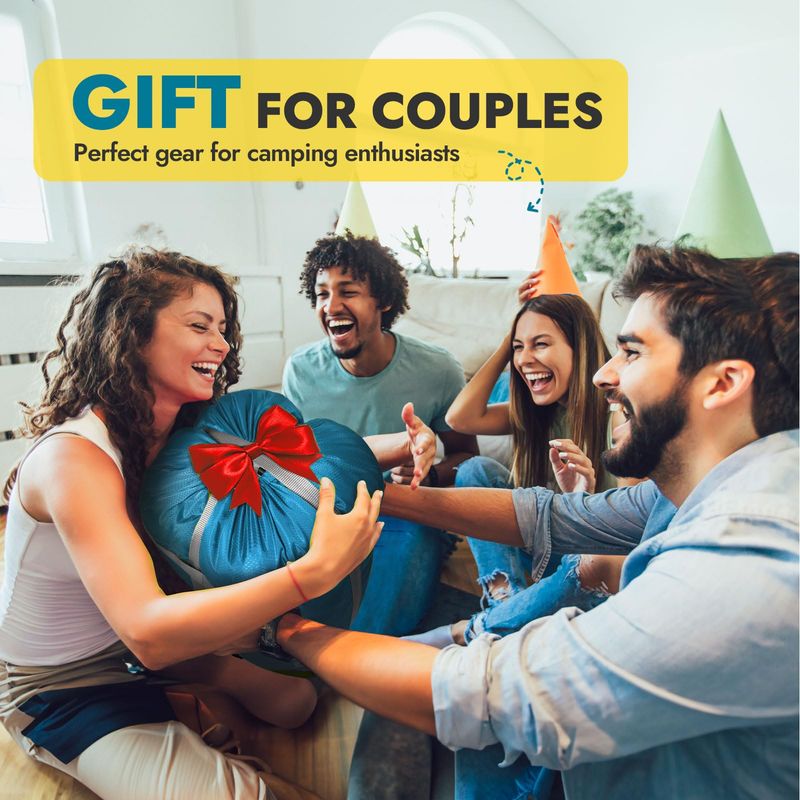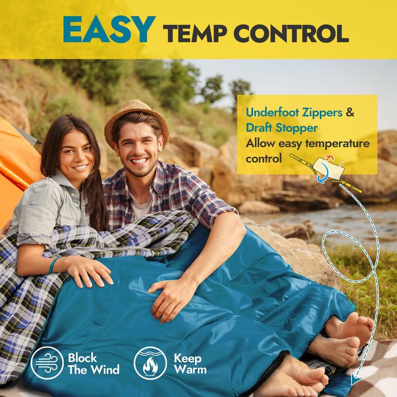 CANWAY SACO DE DORMIR DOBLE, SACO DE DORMIR PARA 2 PERSONAS, LIGERO, IMPERMEABLE, CON 2 ALMOHADAS PARA CAMPING, MOCHILERO O SENDERISMO PARA ADULTOS O ADOLESCENTES, TAMAñO QUEEN XL Y XXL