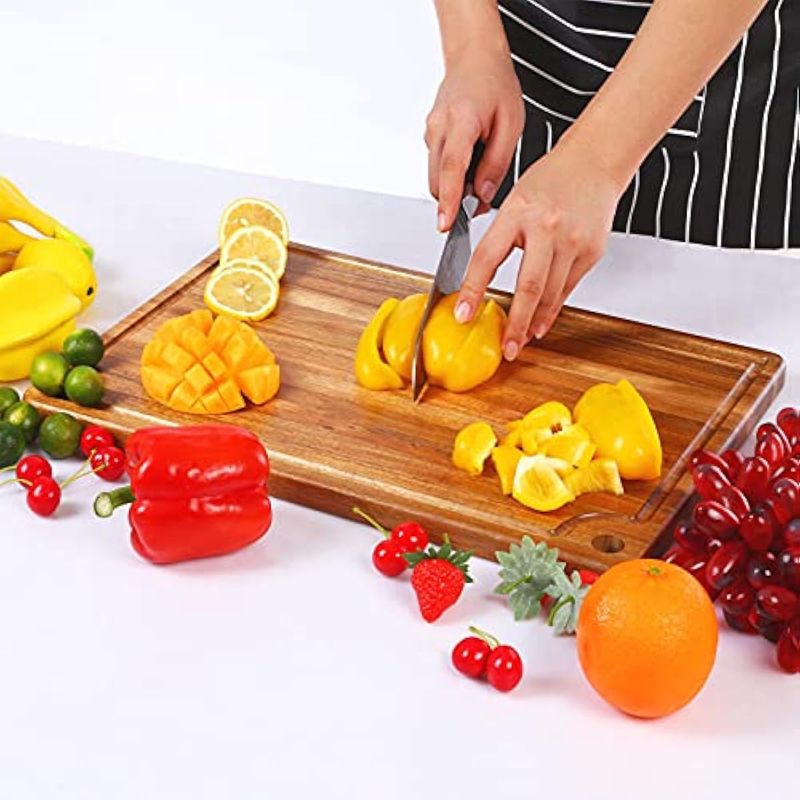 HOGARBAZARUTENSILIOS DE COCINACaperci Better Tabla de cortar grande de madera de acacia para cocina, tabla de cortar con ranura