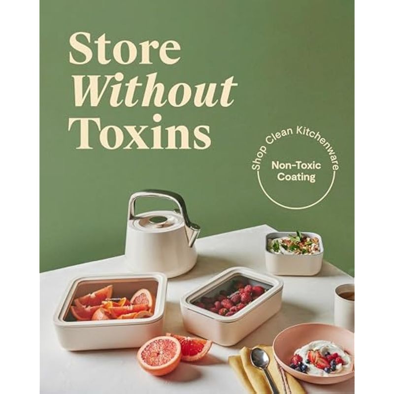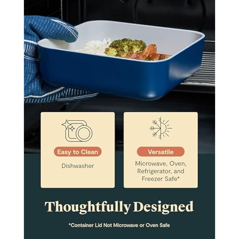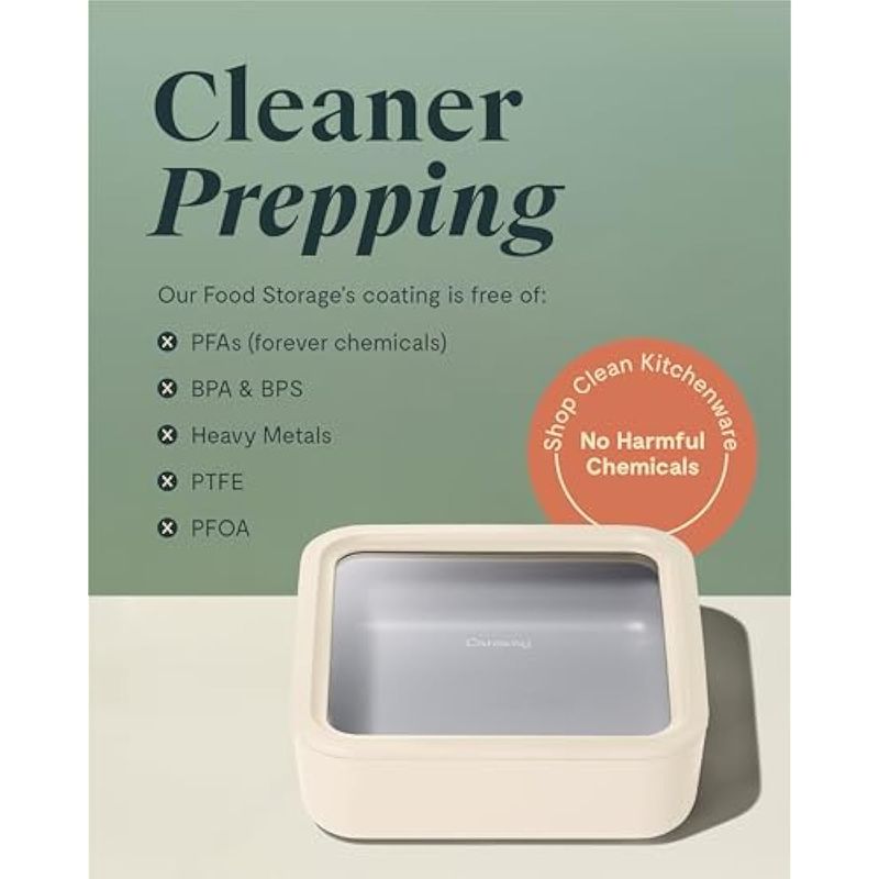 HOGARBAZARUTENSILIOS DE COCINACaraway Recipientes de alimentos de vidrio de vidrio de 4.4 tazas, recubiertos de cerámica, fácil de