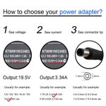 COMPRE EL CARGADOR CORRECTO PARA SU PORTÁTILDISPOSITIVO: El modelo detallado de computadora portátil generalmente se imprime en la cubierta posterior de la computadora portátil. Presione [CTRL + F] para buscar el modelo de su computadora portátilnúmero de pieza. Confirma que el modelo de tu portátil está en nuestros listados compatibles, luego comprueba el voltaje de salidacorriente de salidael tamaño de la interfaz y la forma del cargador original. Deberían ser lo mismo con los de nuestro cargador. De esa manera podrías comprar un adaptador compatible. Si no está seguro, por favor recurra a nosotros.