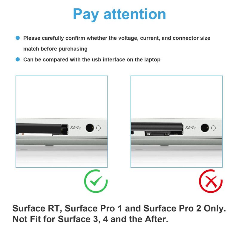 Diseñado para adaptarse a tu Microsoft Surface Pro 2 y Surface Pro 1 y Surface RT y Surface 2, compatible con los modelos 1512 1514 1536 no compatible con tabletas Surface Pro 3Pro 4 Compatible con Microsoft Surface RT 10.6 pulgadas Surface 1512, Surface 1516, Surface Q6T-00001, Surface 2 15133 , Superficie 2 1 572, PA-1240-06MX X05 X861557-002, Surface 2 4G LTE AT&T, Surface 2 P3W-00001, Surface 2 P4W-00001, Surface 2 M2Z-00001, Surface 9HR-00001, Surface 9JR-00002 , superficie 7ZR-00001, Surface 7Z