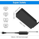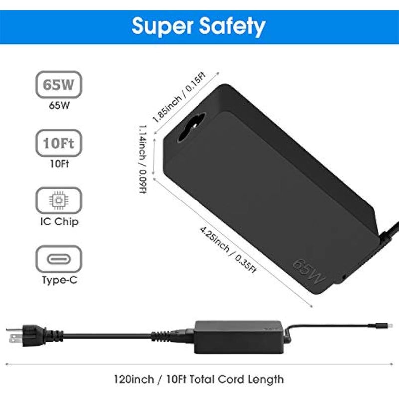 Entrada: CA 110-240 V; Salida: DC 20V 3.25A 15V 3A 9V 3A 5V 3A, Max 65 Watt; Reemplazo para adaptador de corriente de cargador USB C Lenovo no apto para punta redonda o micro USB