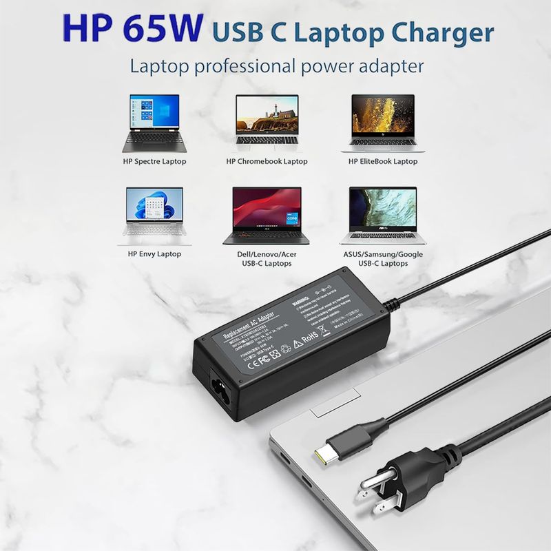 Cargador Chrombook USB tipo C de 65 W y 45 W para HP Chromebook USB C cargador de repuesto para HP