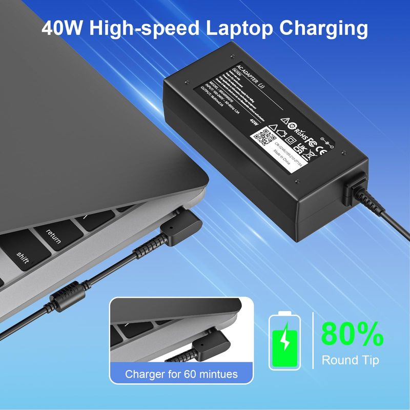 Tamaño del conector: 0.118* 0.039 in. Entrada: CA 100-240v, 50-60Hz Salida: 19.5V 2.1A 40W. Es un cargador Samsung A13-040n2a, cargador de Samsung pa-1400-96, adaptador de CA de Samsung ad-4019a. Compatibilidad con el cargador original Samsung Chromebook, es el mejor cargador de repuesto para portátil Samsung