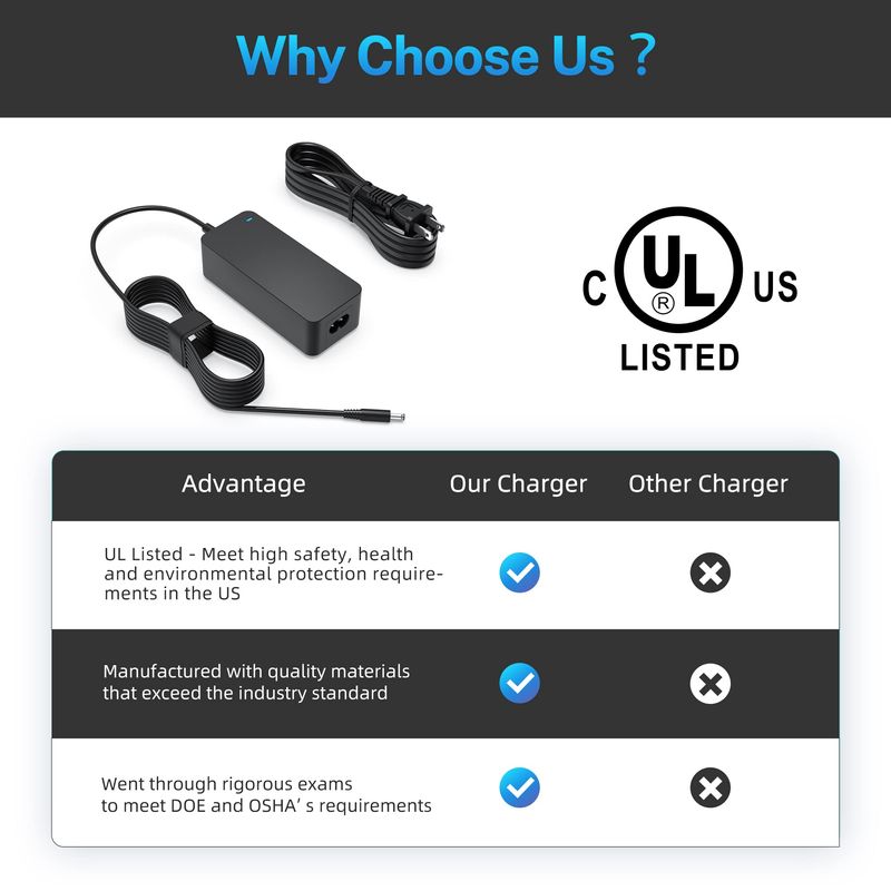 Cargador de CA con certificación UL para Dell Inspiron 20 3052 3059 3655 3472 3662 Chromebook 7310