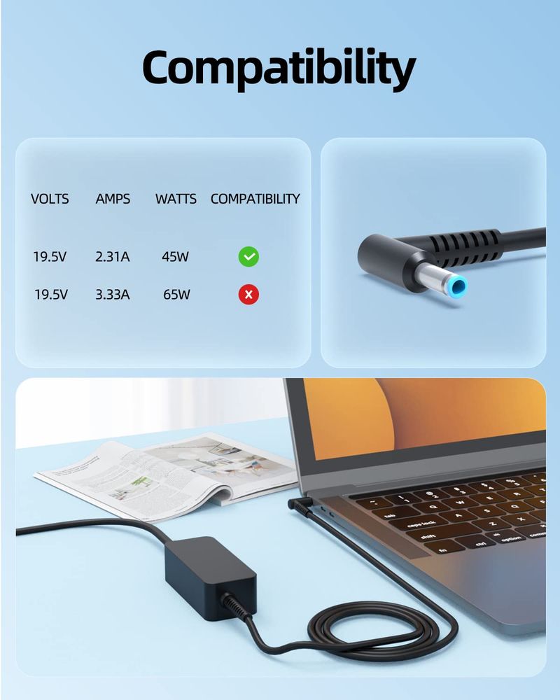Cargador de CA de 45 W para HP 14-fq0013dx 15-dw3025od 15-dw3056cl 15-dw2025od 15-dw4725od
