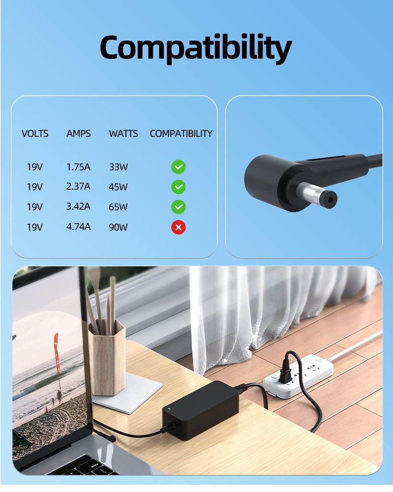 Cargador de CA de 65 W con certificación UL para Asus X515 X515J X515E X515JA X515JP X515EA X515M