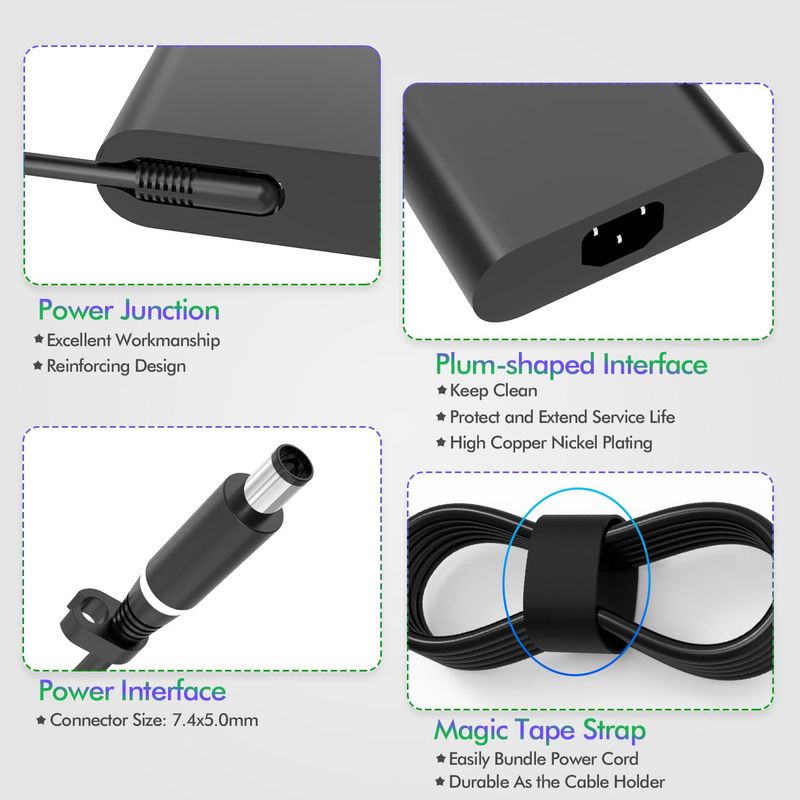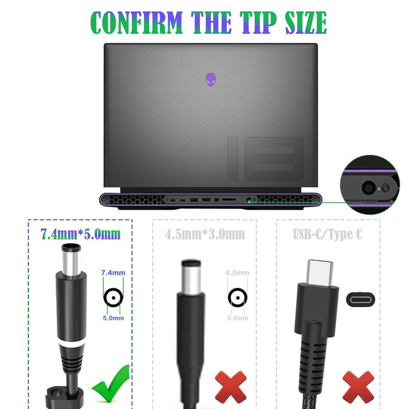 Especificaciones de alimentación: voltaje de entrada de CA: 100 ~ 240V 4.5A 50 ~ 60 Hz, salida: 19.5V 16.92A; Potencia: 330W MAX, Tamaño del conector: 0.291* 0.197 in con pin central