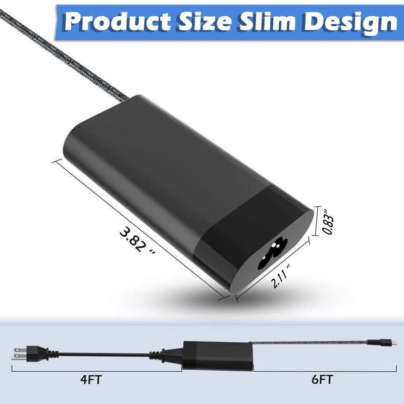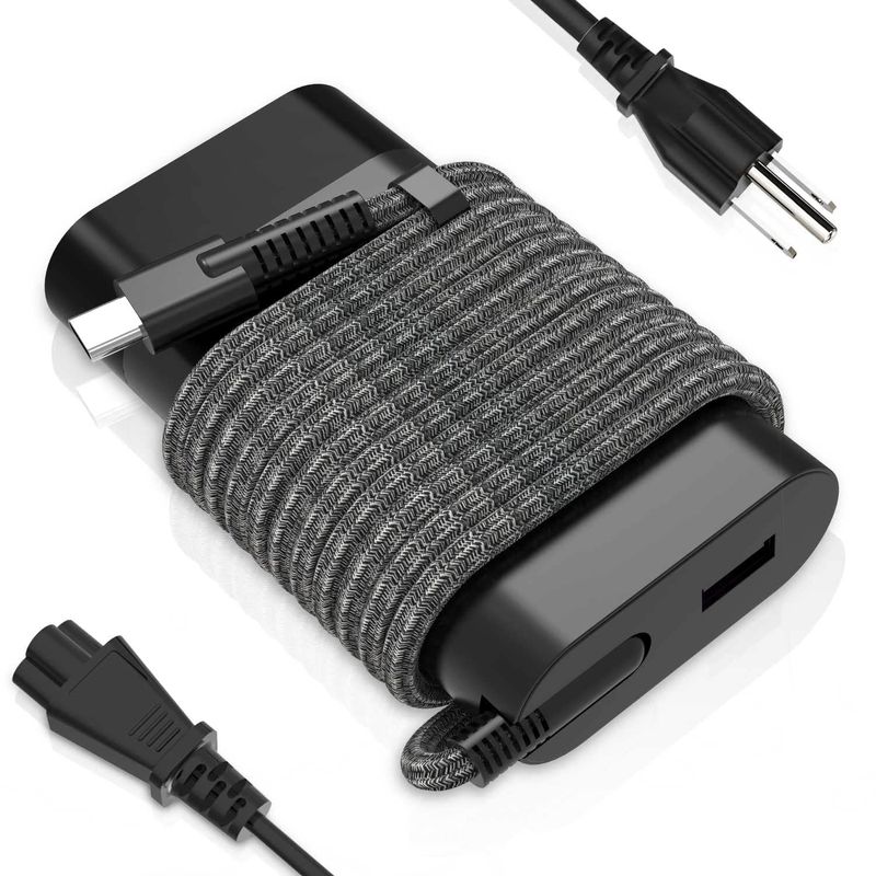 CARGADOR DE CA USB C DELGADO DE 65 W, APTO PARA HP SPECTRE X360 ELITEBOOK 840 PROBOOK 430 ELITE X2 CHROMEBOOK X360 ENVY X360 TRAVEL FAST CHARGING LAPTOP POWER SUPPLY ADAPTER CORD