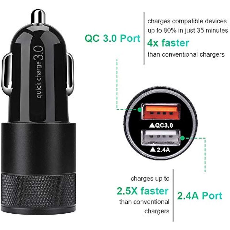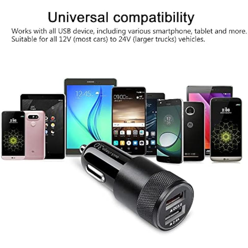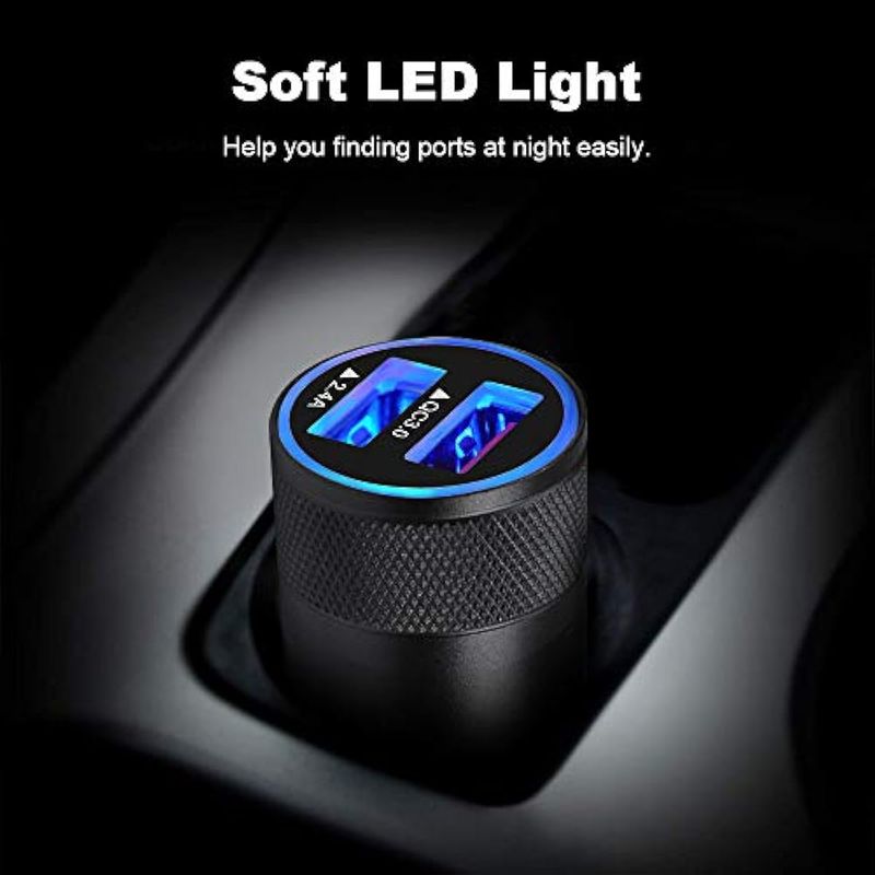 2. Cargador de coche USB dual: QC 3A y 2.4A, soporta la carga de hasta 2 dispositivos simultáneamente con la máxima velocidad de carga.