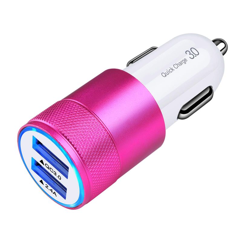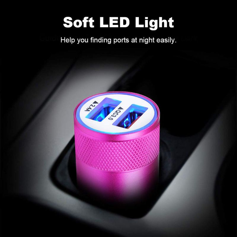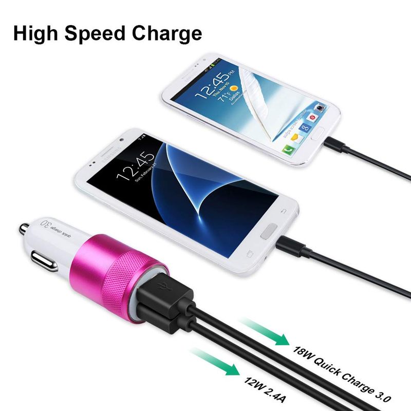 2. Cargador de coche USB dual: QC 3A y 2.4A, soporta la carga de hasta 2 dispositivos simultáneamente con la máxima velocidad de carga.