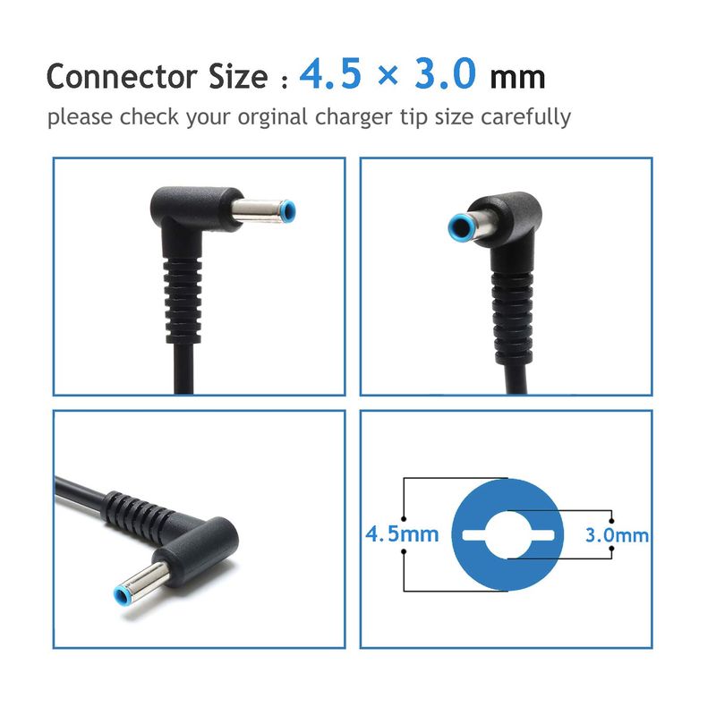 Cargador de computadora portátil de 45 W y 65 W, cable de alimentación para HP 15-AC 15-BS 15-CS