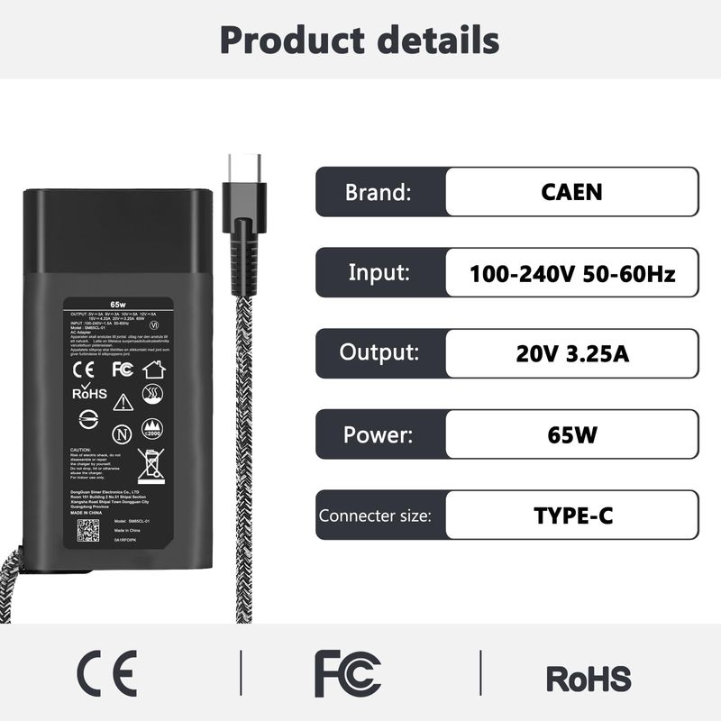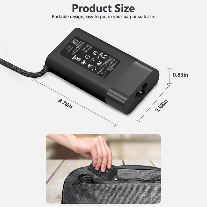 Cargador de laptop USB C delgado de 65 W para HP Chromebook X360, Envy X360, Elitebook X360, Spectre