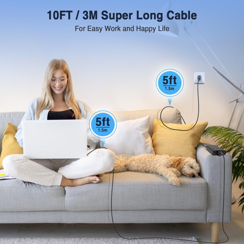 Lo que obtienes: un cargador USB C para portátil de 130 W con cable de extensión de CA de 5 pies y cable de extensión CC de 5 pies
