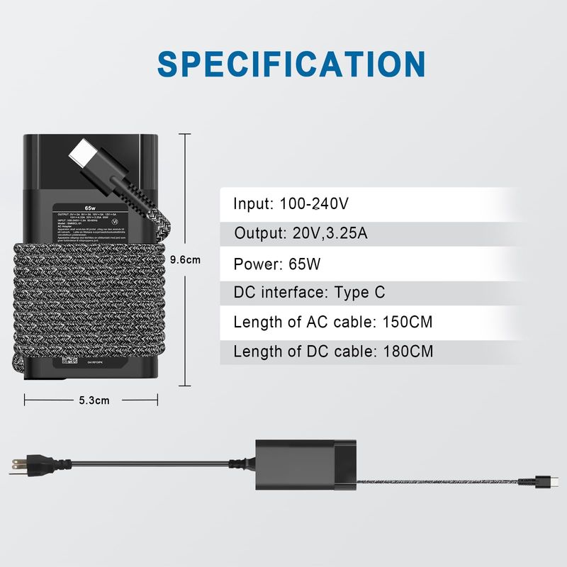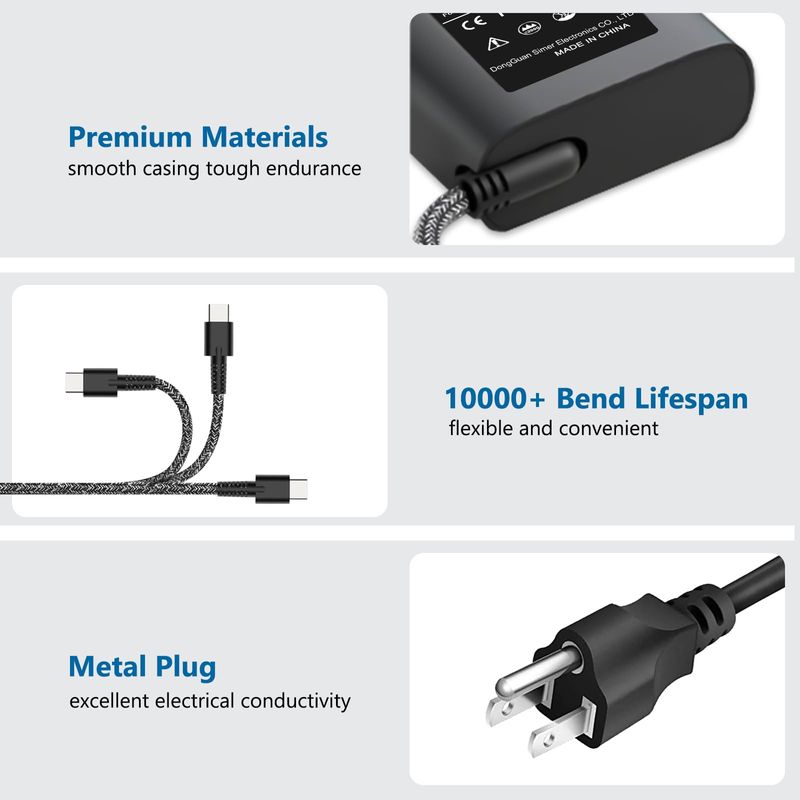 Cargador de portátil USB C de 65 W y 45 W para HP Spectre x360, Chromebook X360, Envy, Elitebook